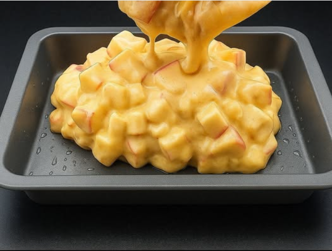 Выкладываем на тесто ровный слой из яблок.