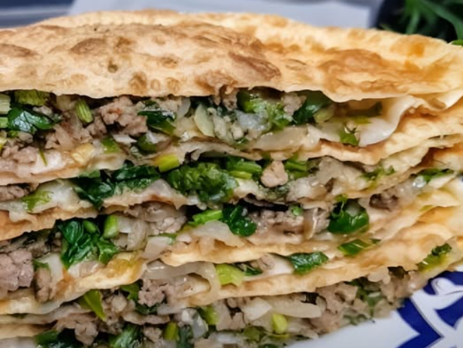 Лепешки получаются мягкими, с хрустящей корочкой, очень сочные за счет мясной с зеленью и луком начинкой.