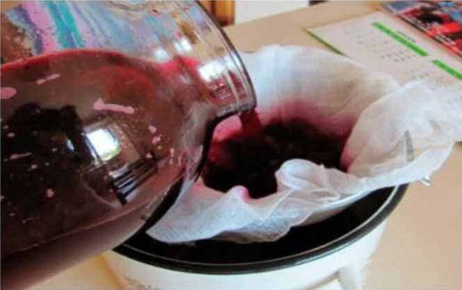 - Отвар процедить через марлю или мелкое сито. Получится около 1 литра густого, тёмно-бордового отвара (концентрат!).